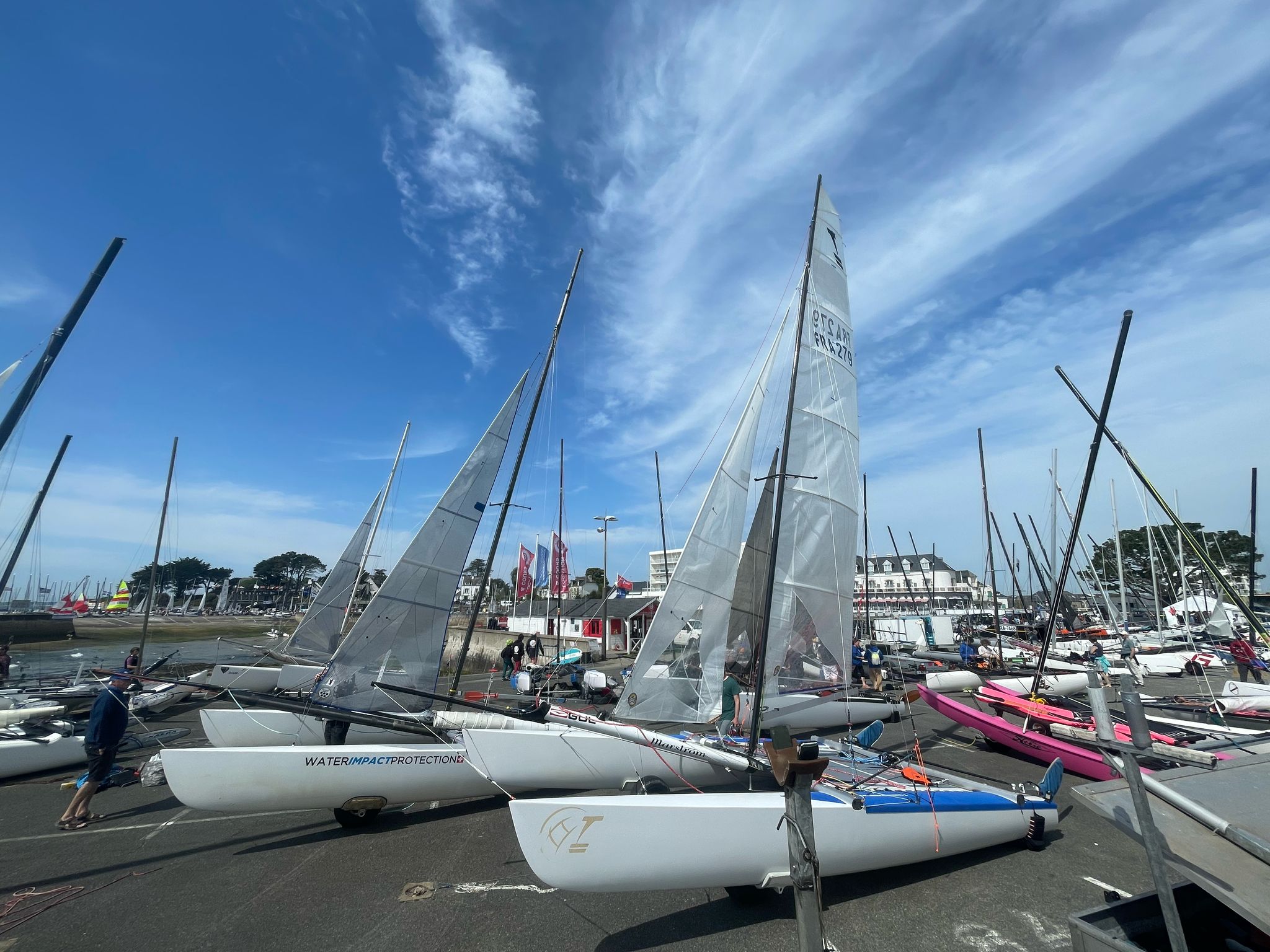 La ligne n’est pas bien grande, et il y a du monde qui se presse. 2 départs, le premier pour les nacra 15 (ils sont 25), le second pour le reste des C1, les Viper, les F16 et les F18. Et là aussi il y a du monde !